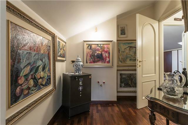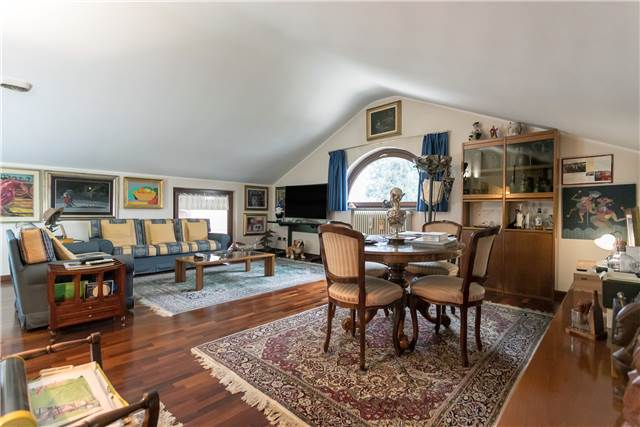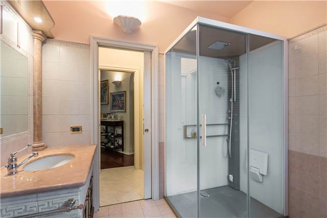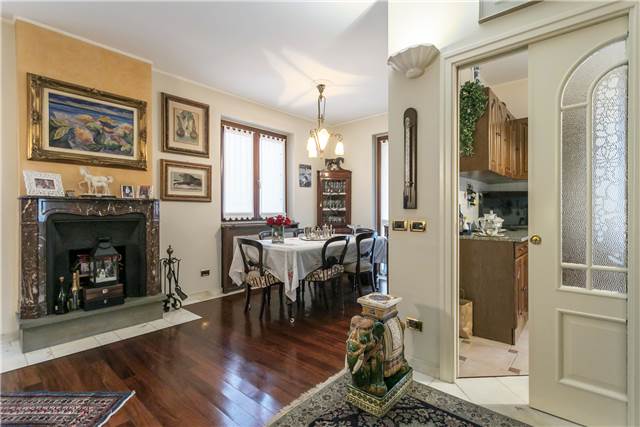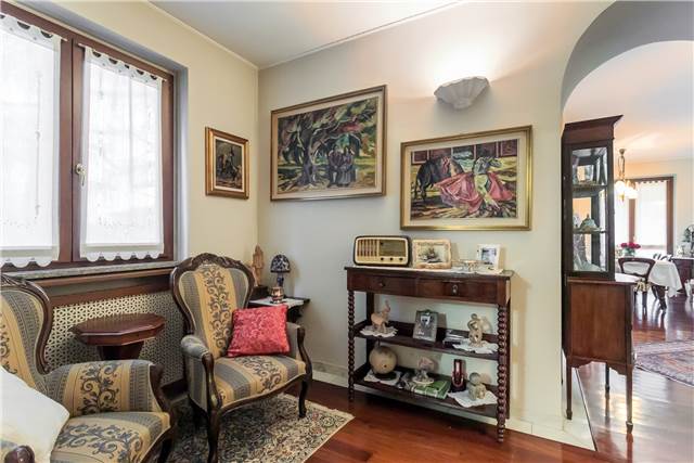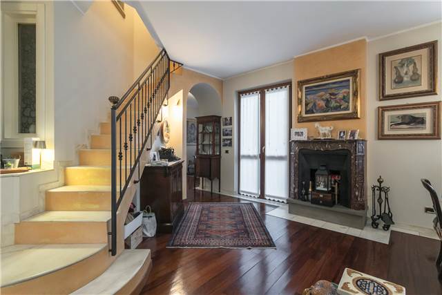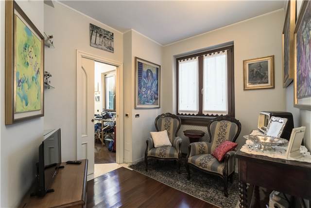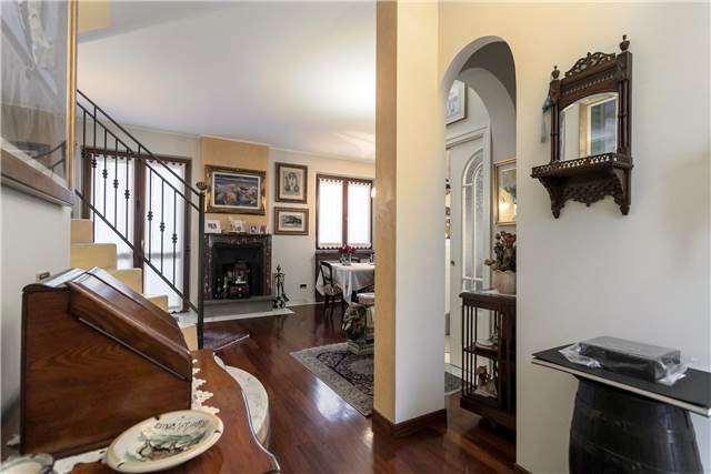 All’interno si apre un soggiorno ampio e luminoso, valorizzato da un camino in marmo rosa del Settecento, funzionante, che dà carattere all’ambiente.