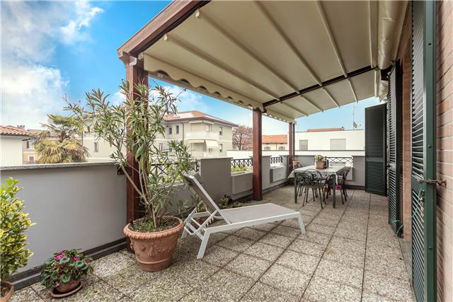 La cucina è abitabile, dalla zona giorno si accede a un terrazzo di circa 40 mq, uno spazio esterno comodo e realmente sfruttabile, già dotato di tende da sole.